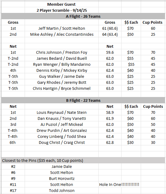 2026 Glen Annie Cup Leaderboard