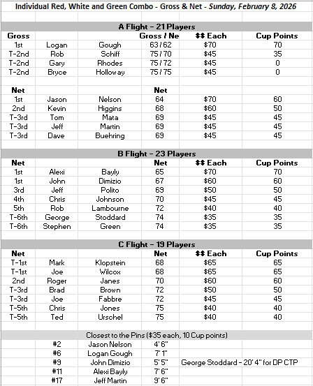2026 Glen Annie Cup Leaderboard
